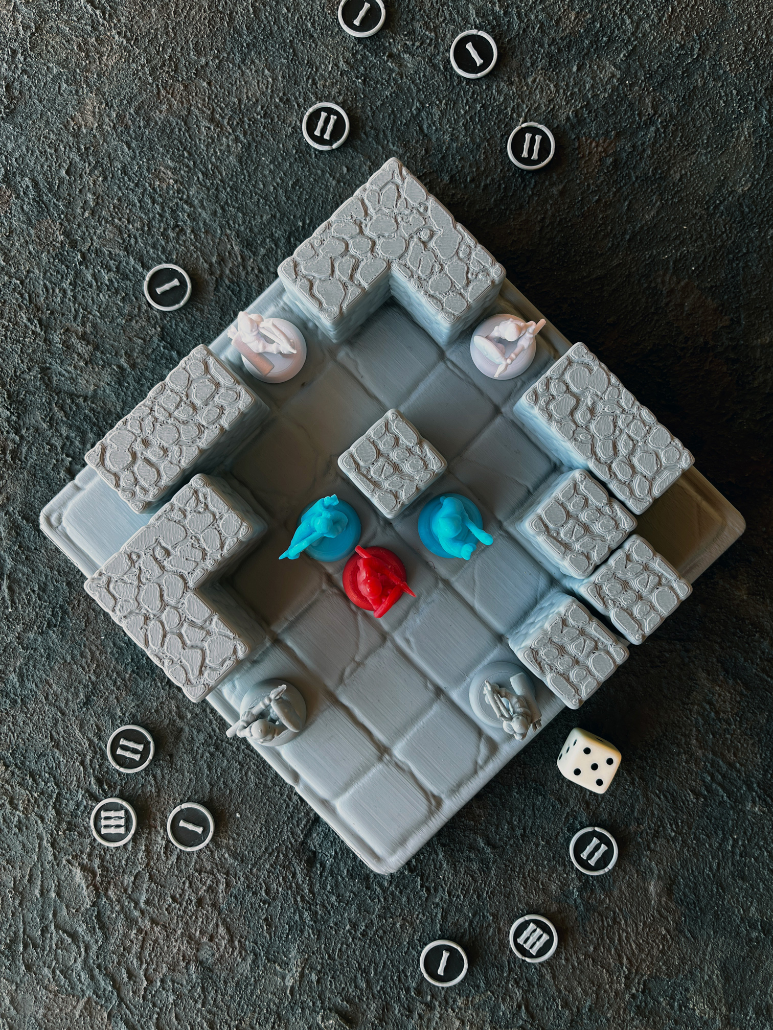 Arena Underground is a dungeon skirmish board game system where players control pawns fighting in a tight underground arena.